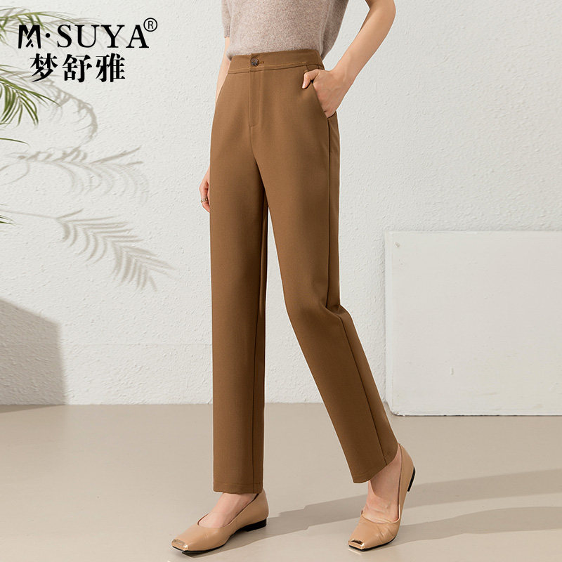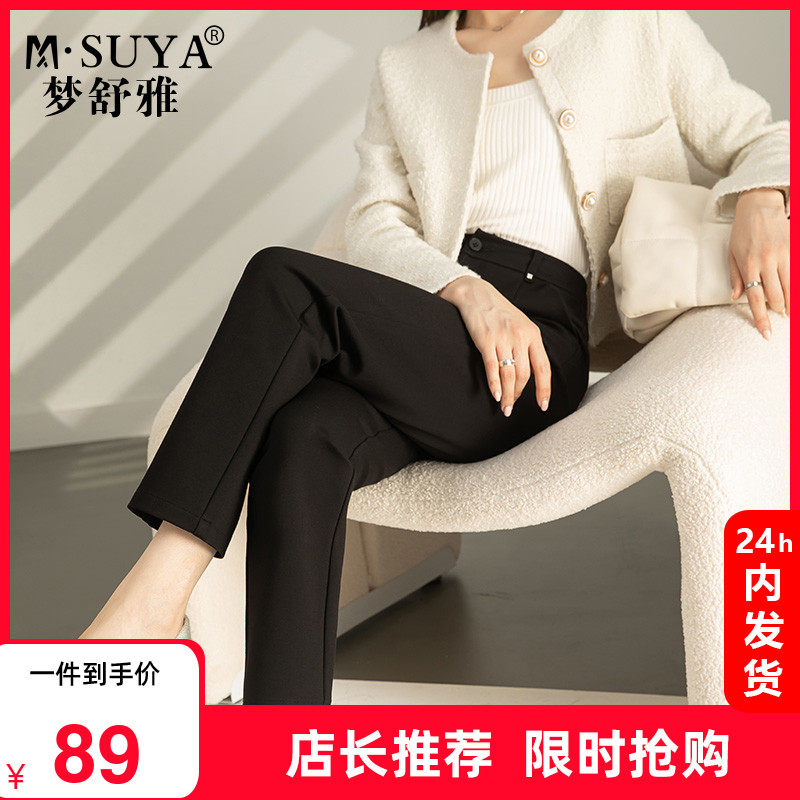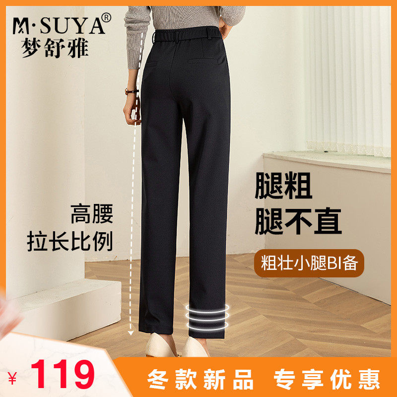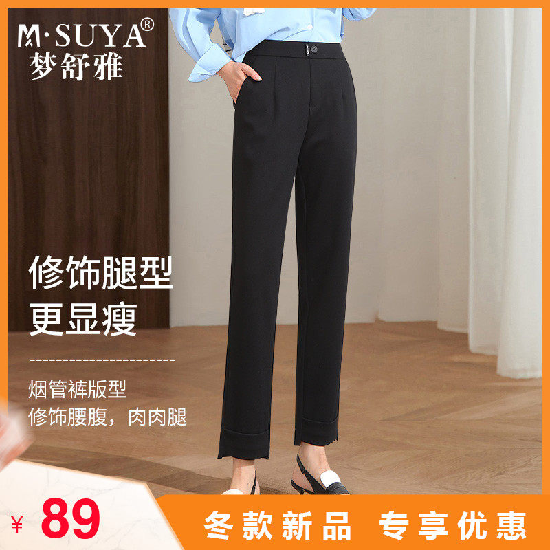 梦舒雅品牌女裤2023秋冬裤子高腰直筒裤女休闲百搭显瘦九分烟管裤