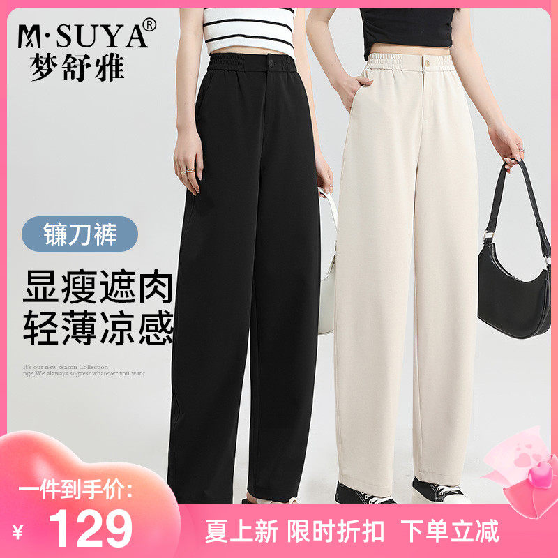 梦舒雅镰刀裤女2023夏高腰垂感窄版阔腿裤女宽松休闲松紧腰长款