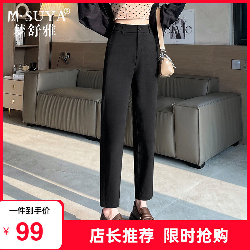 梦舒雅九分哈伦裤女宽松2023秋季直筒大码休闲高腰职业西装裤