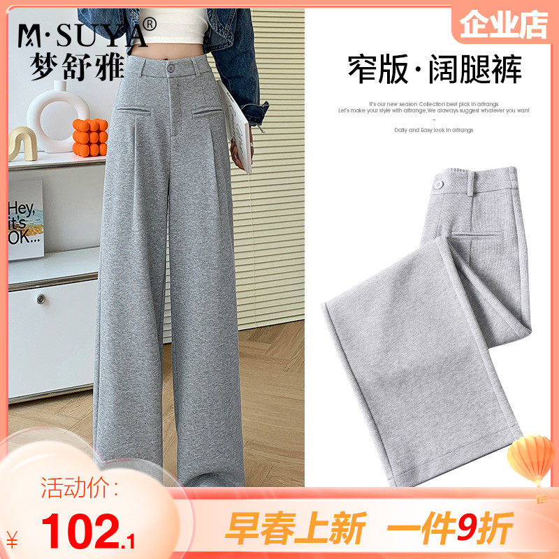 梦舒雅窄版阔腿裤女2024年春秋新款高腰显瘦时尚休闲百搭拖地裤子
