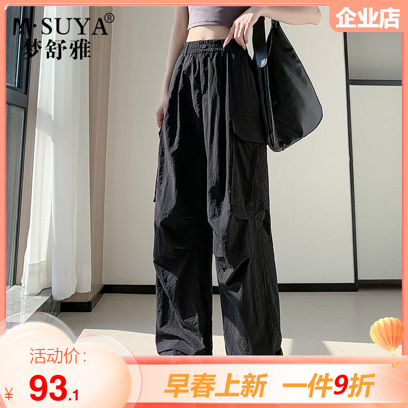 梦舒雅美式工装裤女春秋新款高腰显瘦宽松直筒阔腿休闲时尚运动裤