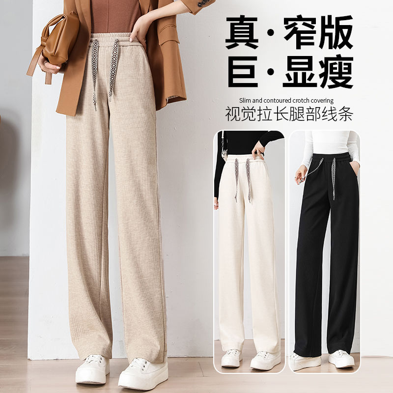 梦舒雅阔腿裤女2022年新款加绒冬加厚高腰垂感针织直筒休闲长裤子