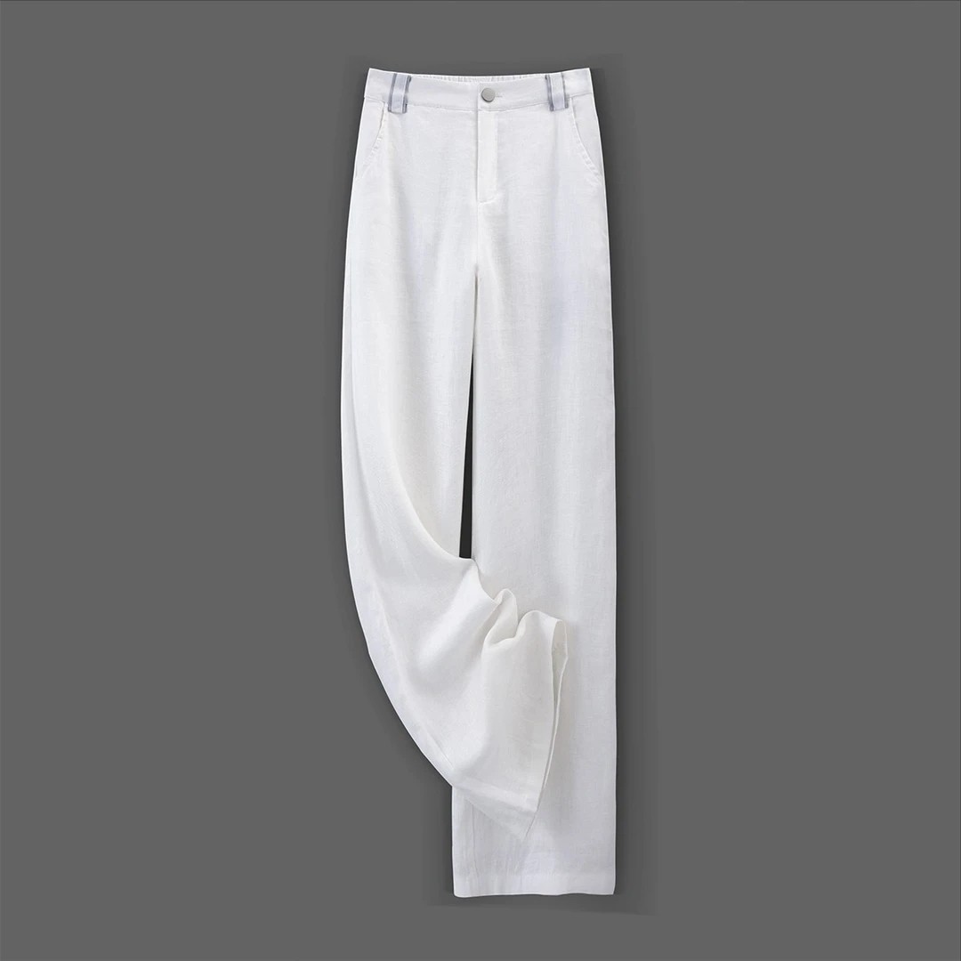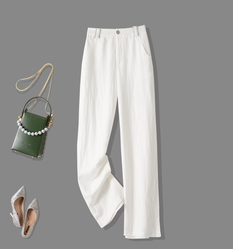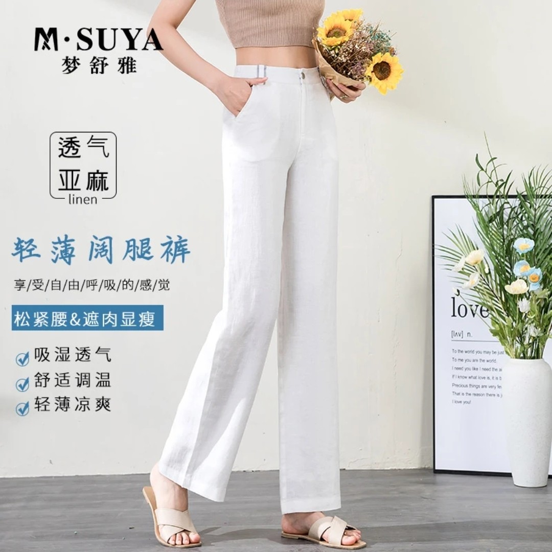 梦舒雅纯亚麻裤窄版阔腿裤女春夏宽松休闲长裤韩版白色高腰直筒裤