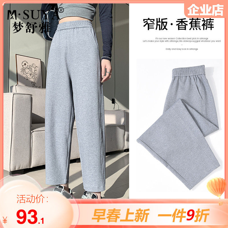 梦舒雅运动裤女2024年春秋新款高腰显瘦宽松直筒阔腿休闲束脚卫裤