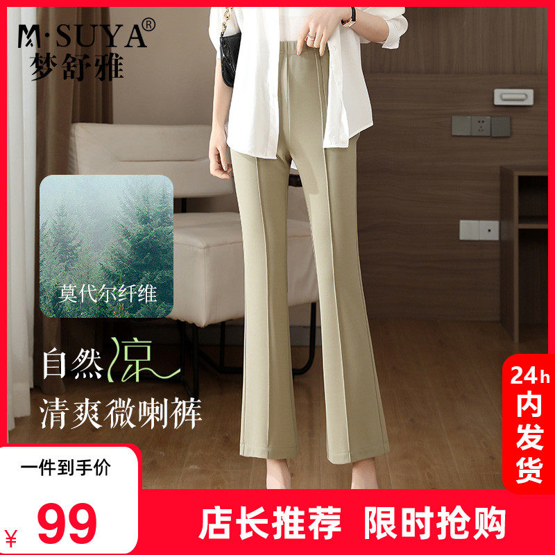 梦舒雅九分微喇裤女2023年夏季薄款高腰时尚休闲显瘦小个子喇叭裤