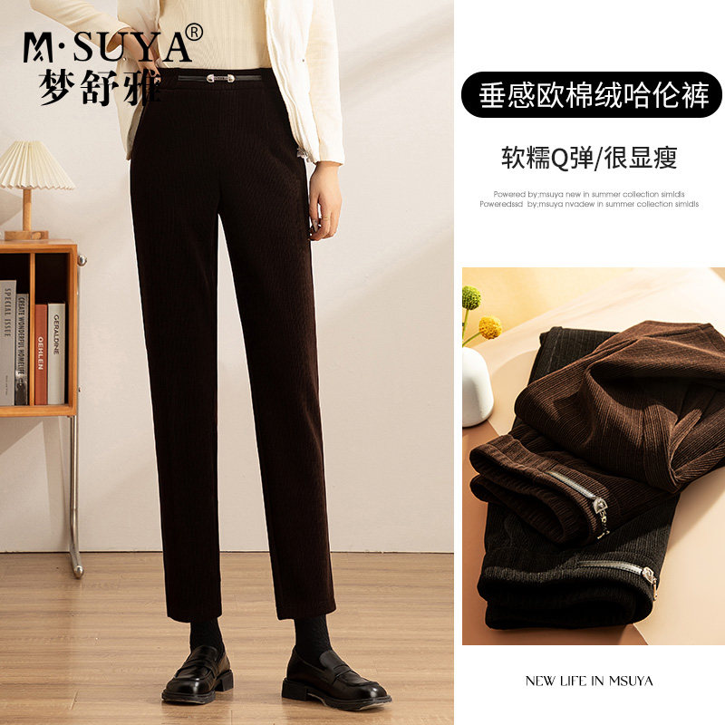 梦舒雅欧棉绒哈伦裤女2023年秋冬新款高腰加绒九分小个子时尚休闲