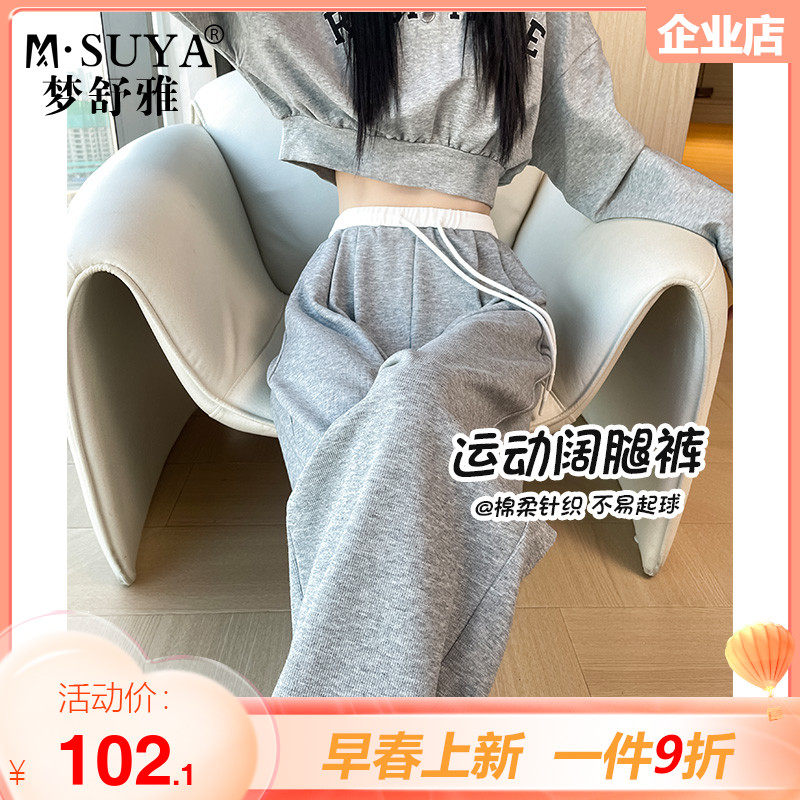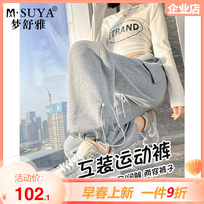 梦舒雅运动阔腿卫裤女2024年春秋新款高腰宽松显瘦休闲松紧腰两穿