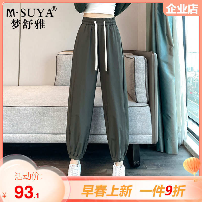 梦舒雅运动裤女2024年春秋新款高腰宽松休闲束脚哈伦裤小个子卫裤