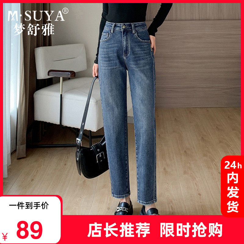 梦舒雅牛仔烟管裤女春秋2023年新款小个子高腰宽松显瘦直筒裤子女