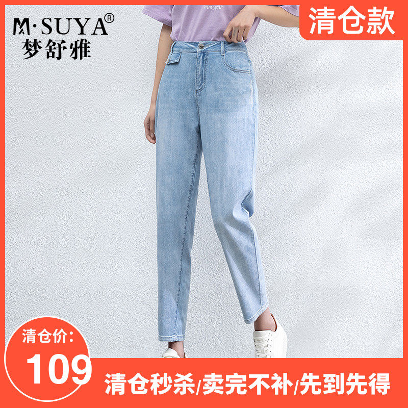 梦舒雅萝卜牛仔裤女哈伦显瘦宽松九分夏款浅蓝色老爹裤小个子胖mm