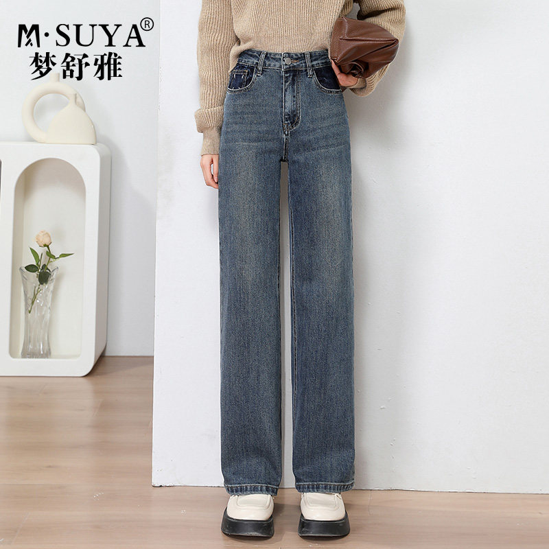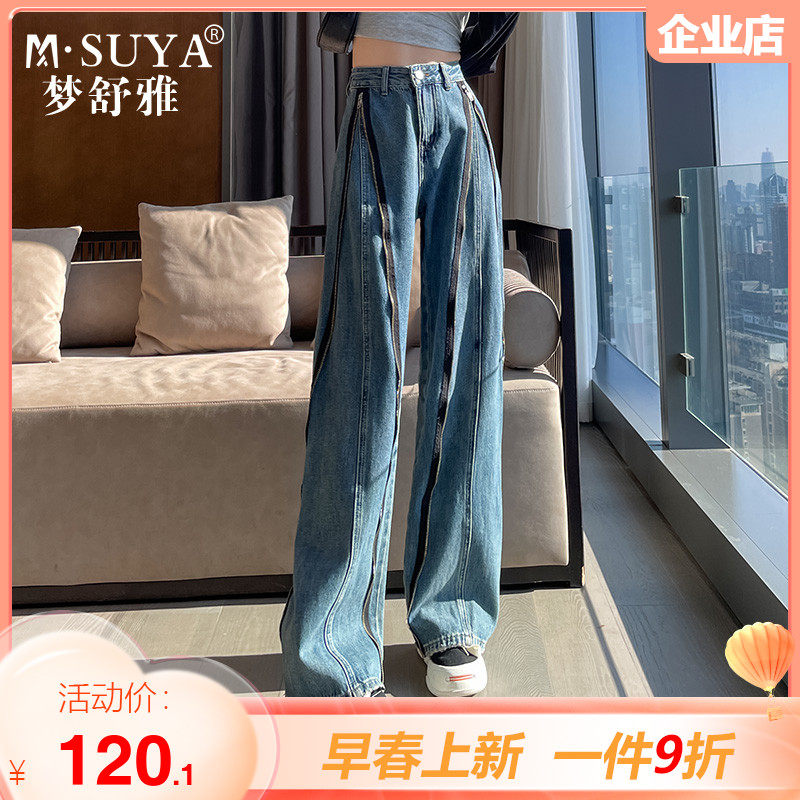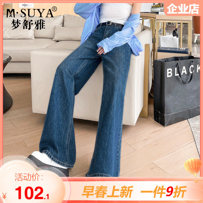 梦舒雅牛仔阔腿裤女2023年春秋新款高腰显瘦直筒复古时尚拖地裤子