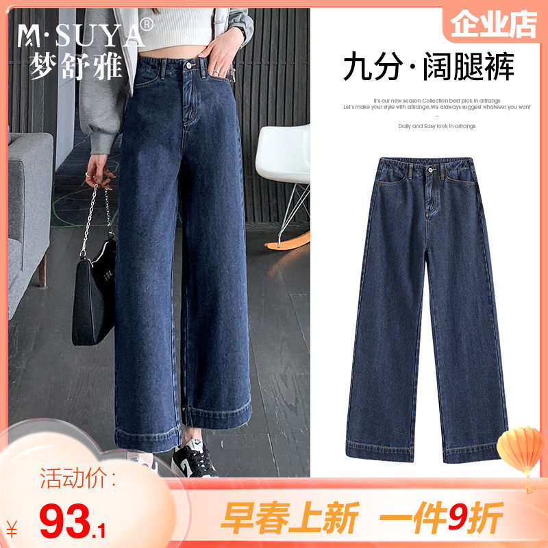 梦舒雅高腰阔腿牛仔裤女春秋新款宽松显瘦休闲时尚垂感小个子直筒
