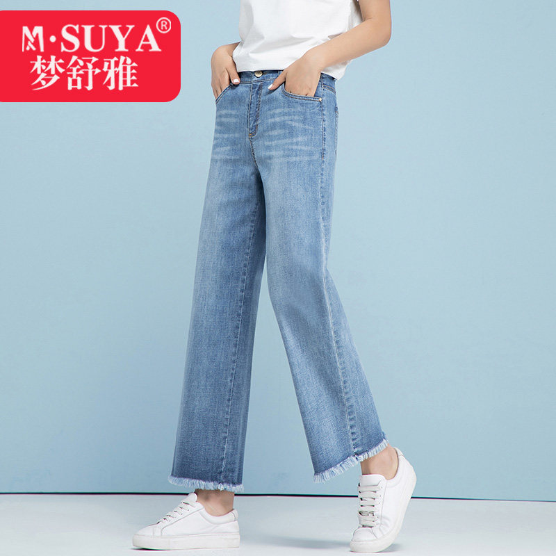 梦舒雅女裤小个子春秋毛边牛仔裤宽松高腰垂感直筒裤九分裤阔腿裤