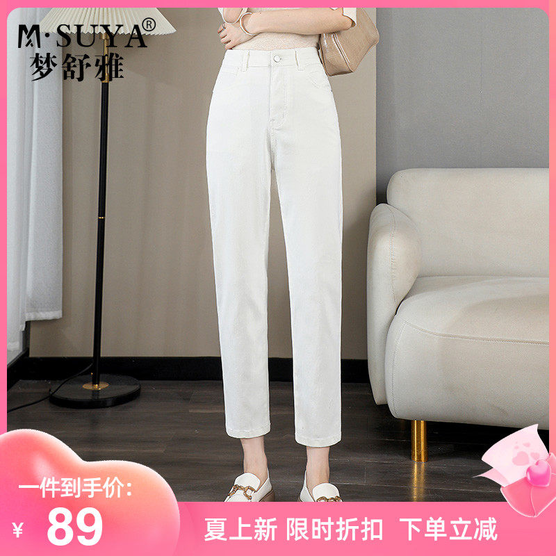 梦舒雅牛仔烟管裤女2023年夏季新款高腰宽松显瘦休闲白色哈伦裤子