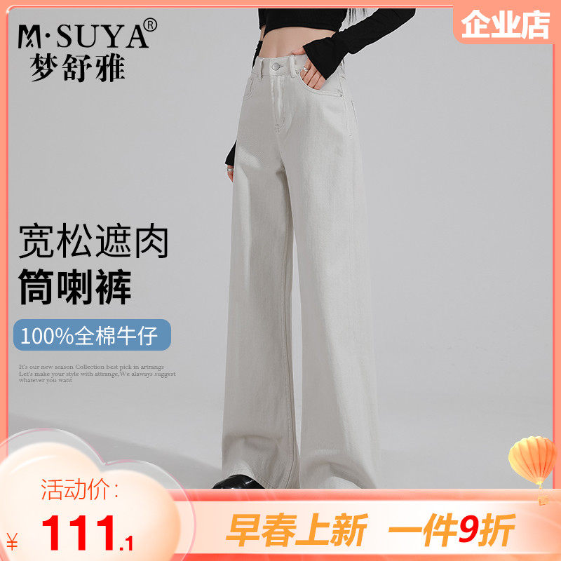 梦舒雅高腰阔腿牛仔裤女春秋新款宽松显瘦时尚垂感直筒拖地长裤子