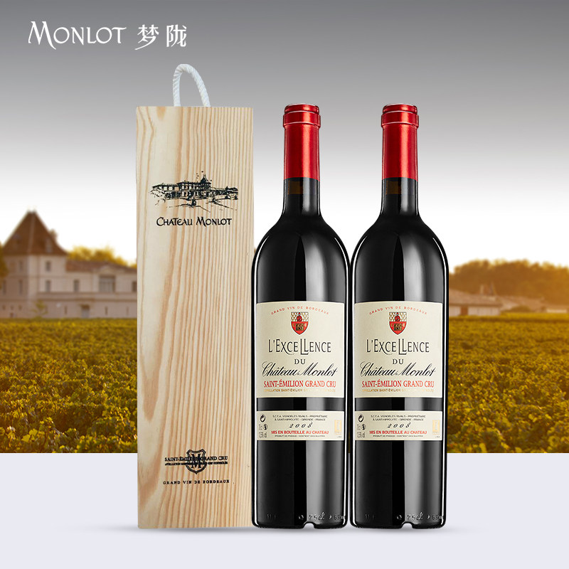 梦陇酒庄红酒2支 法国进口城堡卓越干红葡萄酒2008礼盒装