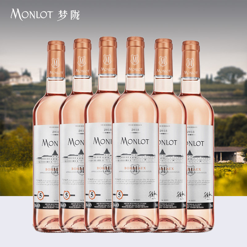 梦陇红酒法国进口波尔多AOC2018桃红葡萄酒整箱6支