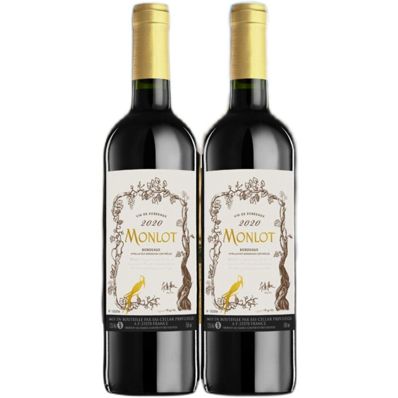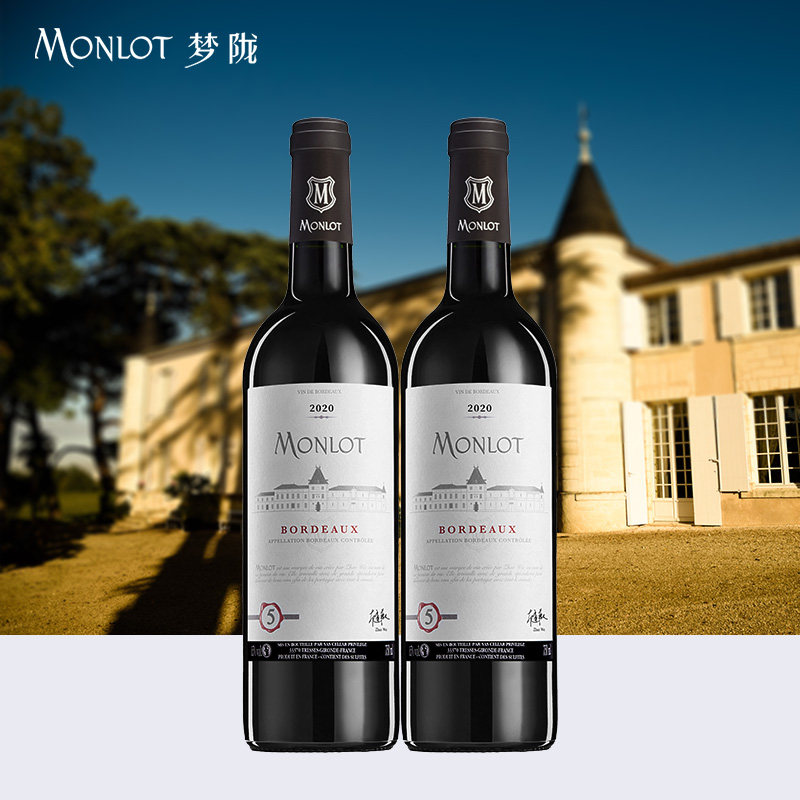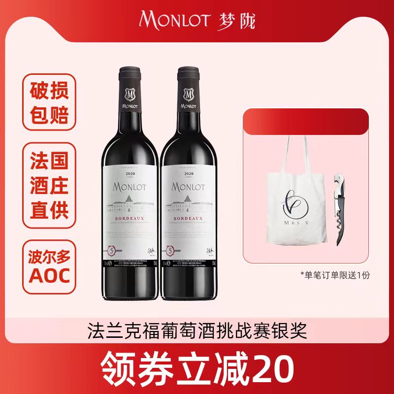 梦陇红酒法国原瓶进口干红2020波尔多经典葡萄酒双支