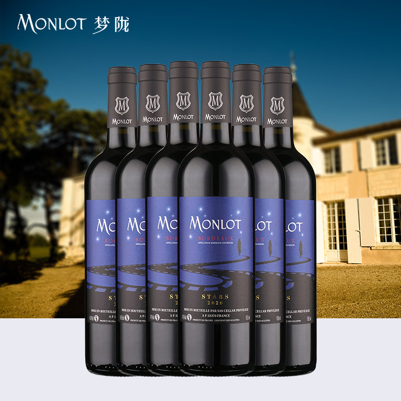 梦陇红酒法国波尔多原瓶进口葡萄酒干红星光2020六支