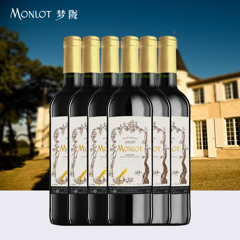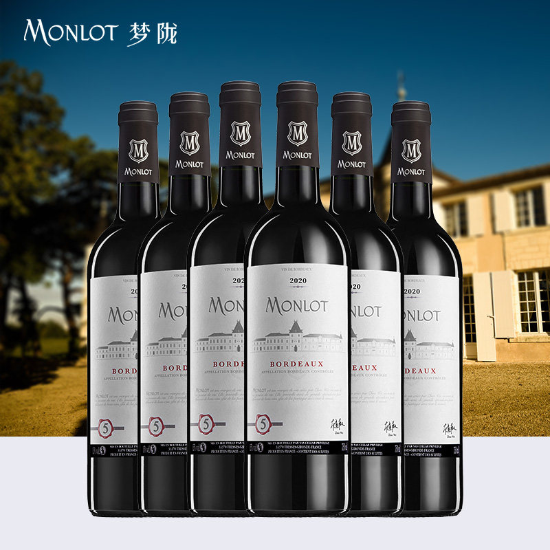 梦陇红酒法国原瓶进口波尔多AOC级干红2020葡萄酒6支装