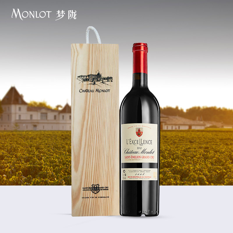 梦陇红酒法国原瓶进口城堡卓越干红葡萄酒2008单支礼盒装