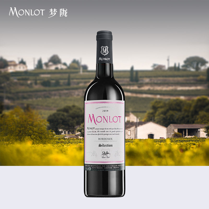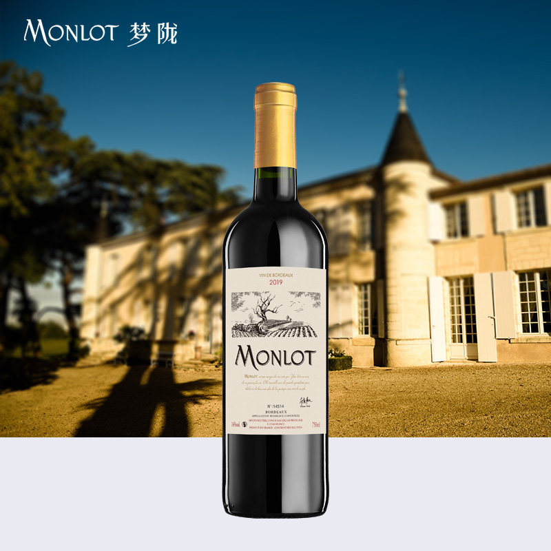 梦陇葡萄酒法国原瓶进口红酒 波尔多AOC干红2019精选单支