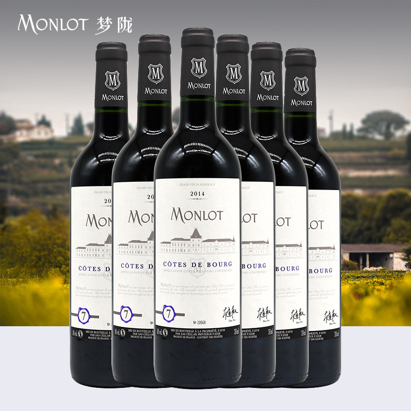 梦陇红酒法国原瓶进口布尔丘干红葡萄酒囤货2014单/双/六支装