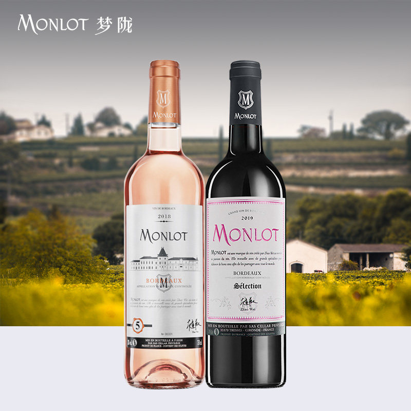 梦陇红酒法国原瓶波尔多AOC葡萄酒干红桃红2支装浅深组合