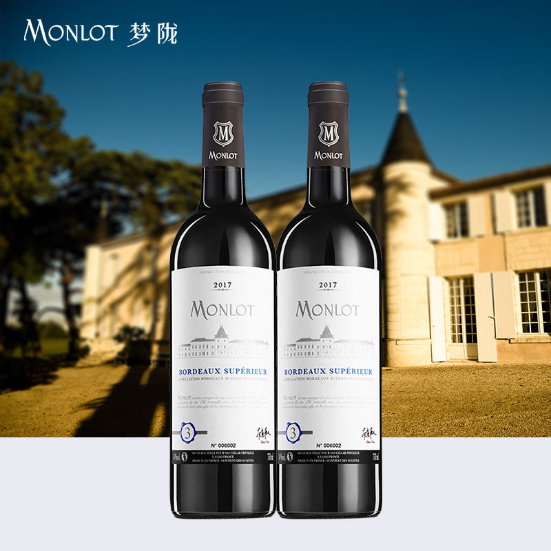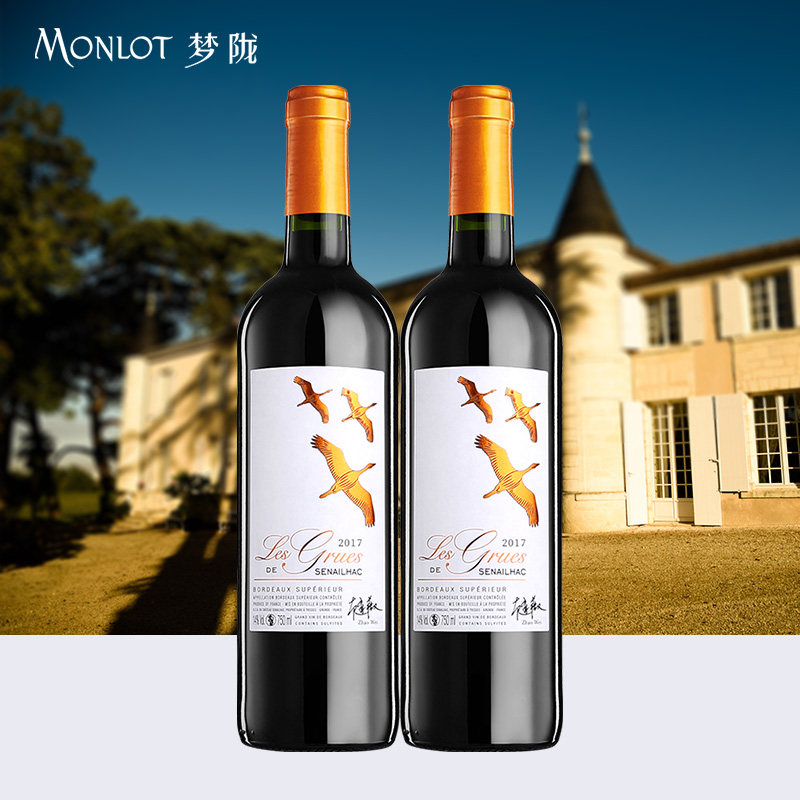 梦陇红酒法国原瓶进口葡萄酒AOC级别 优选波尔多2017干红2支装