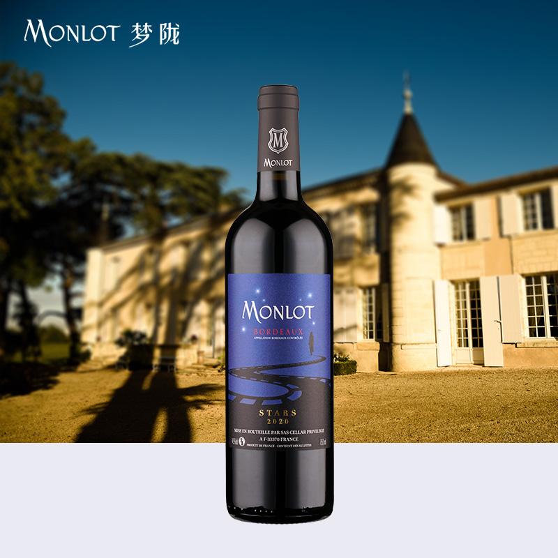 梦陇红酒法国波尔多原瓶进口AOC级别葡萄酒干红星光2020单支装