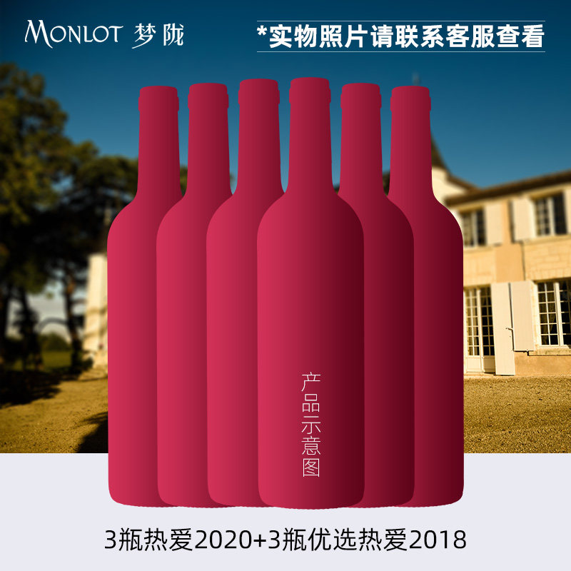 梦陇红酒热爱2020+优选热爱2018干红法国进口6支组合