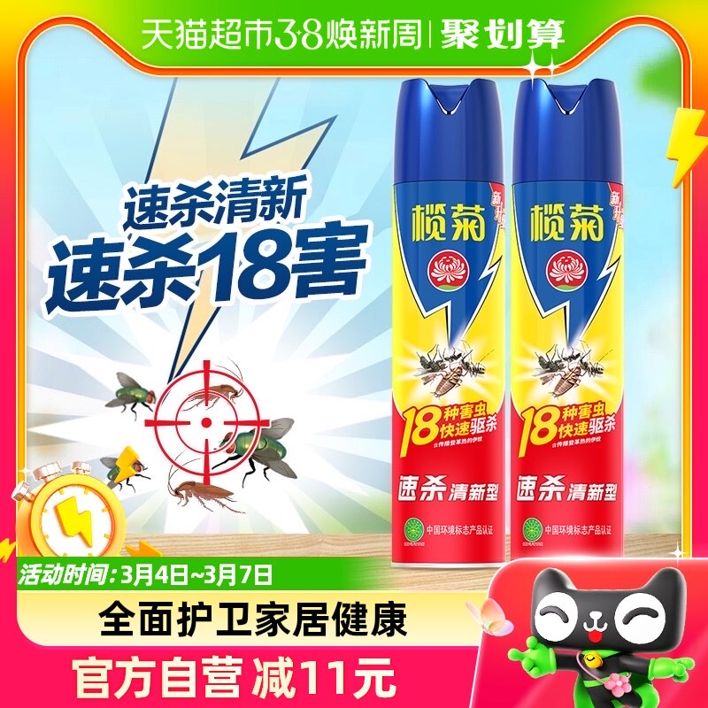 榄菊杀虫喷雾剂家用室内灭蚊虫苍蝇跳蚤蟑螂药气雾剂非无毒药喷剂