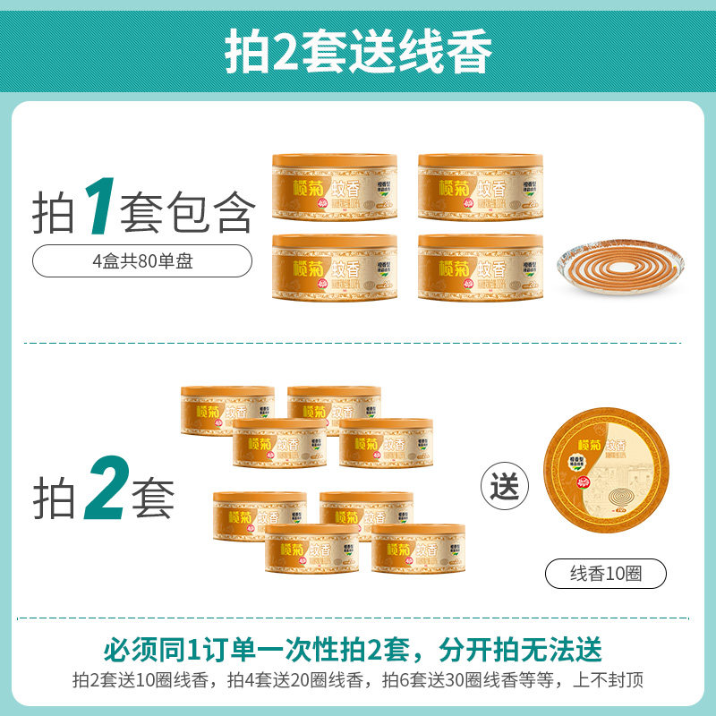 榄菊檀香驱蚊线香安神室内去异味加大盘香式熏香厕所除臭40单圈*2