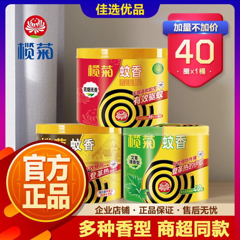 榄菊蚊香40圈檀香型驱蚊家用大盘灭蚊香盘式黑蚊香盘桶装家庭实惠