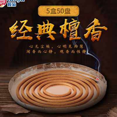 榄菊 蚊香檀香型线香盘式蚊香细香盒清香去味驱杀蚊虫5盒50(高)