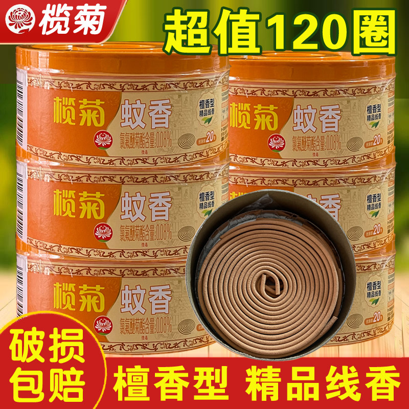 榄菊蚊香檀香型精品线香6盒120圈厨房厕所祛味加香驱蚊宾馆香薰