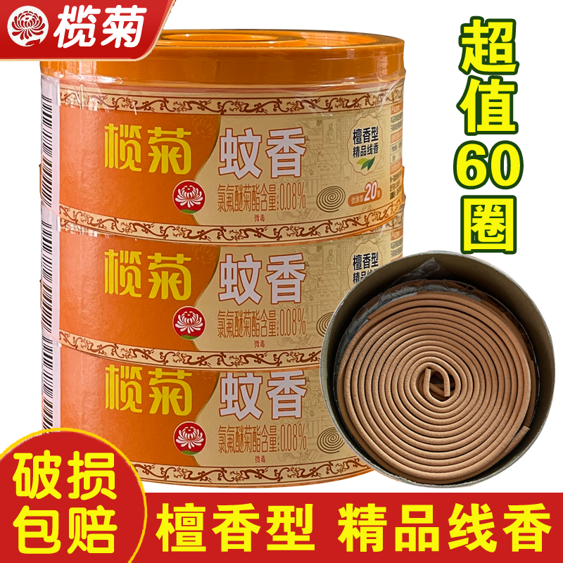 榄菊蚊香檀香型蚊香线香盘香家用熏香驱蚊厕所去异味10盘整箱60盒