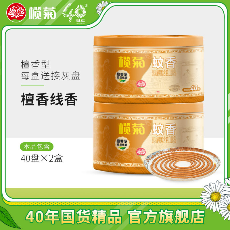 榄菊檀香型蚊香2盒40盘线香檀香浓郁有效驱蚊家用蚊香厕所祛味