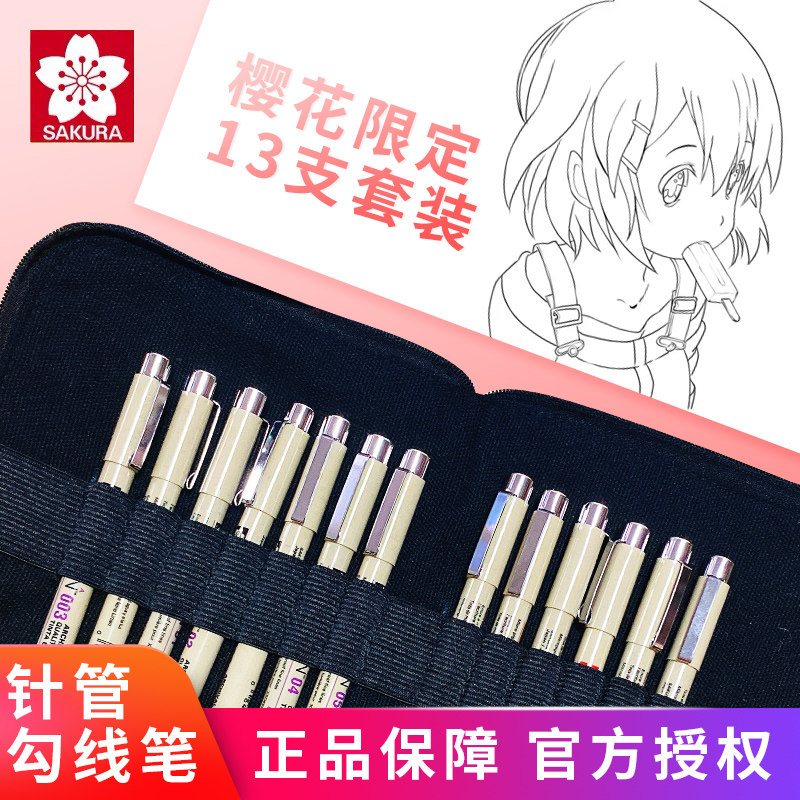 日本樱花限定款13支针管绘图笔防水勾线笔漫画描边笔描线手绘笔绘图笔手绘漫画设计专用笔绘图笔勾线笔套装
