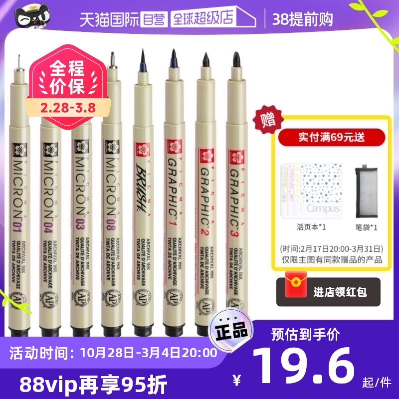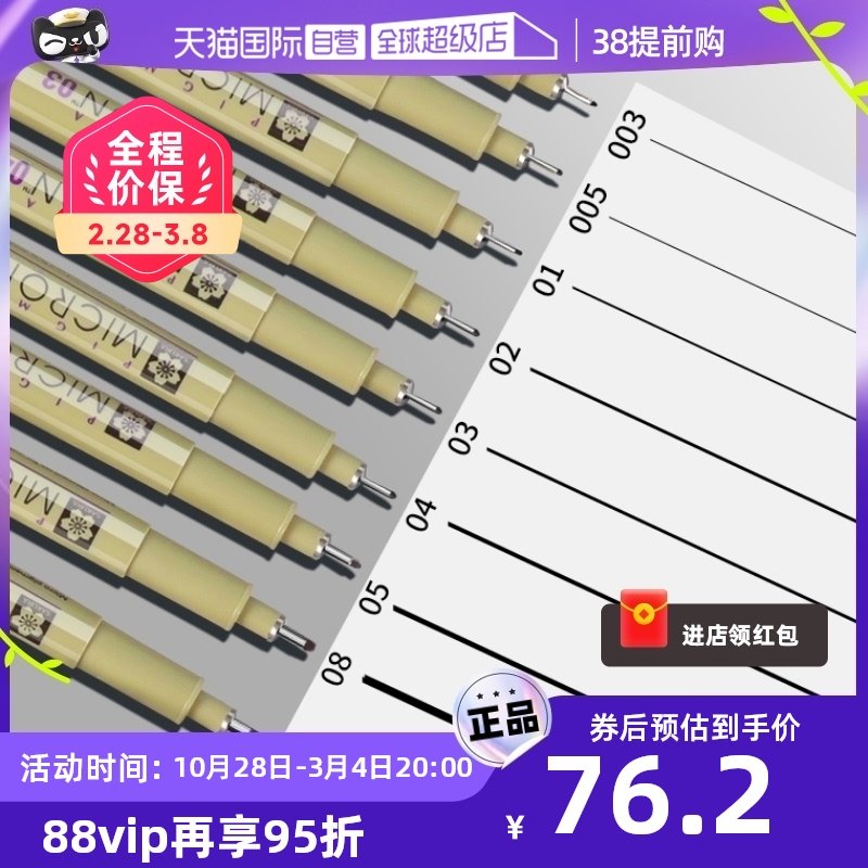 【整盒更划算】日本樱花勾线笔进口针管笔黑色水性防水0.8漫画勾线手绘0.1mm美术生003绘图设计专用0.5动漫笔