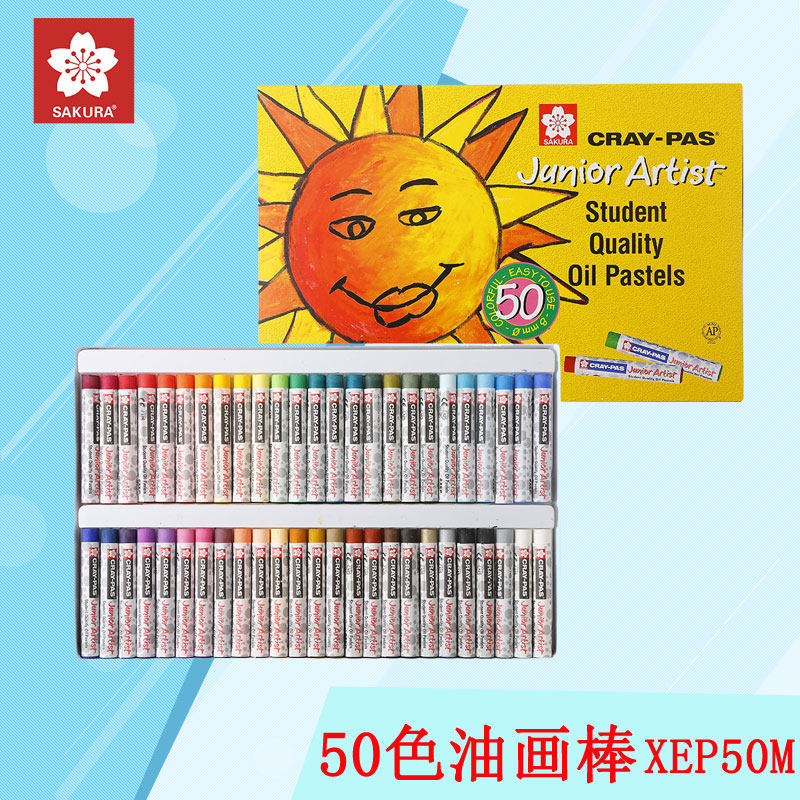 日本Sakura樱花油画棒48色盒装美术画画软蜡笔幼儿园学生48色彩色画笔儿童绘图彩棒涂鸦绘图笔50色送勾线笔