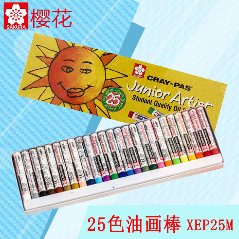 日本Sakura樱花塑料蜡笔勾线60色专业级油画笔24色儿童油画棒铁盒套装礼物30色幼儿园炫彩不脏手可水洗彩绘棒