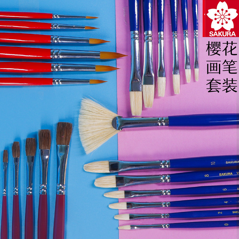 樱花红色长杆281尼龙水彩油画丙烯水粉画笔VISUAL系列猪鬃马毛工具套装初学者美术生学生画家写生画笔勾线笔
