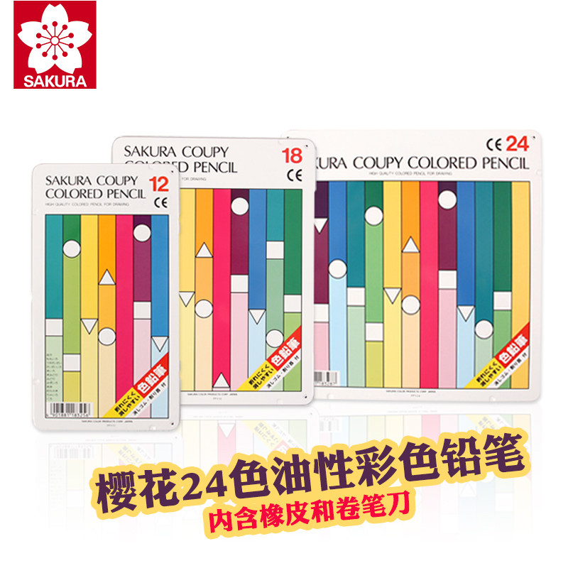 樱花PFY-24色18色12色彩色铅笔套装铁盒彩铅送转笔刀和橡皮擦系列