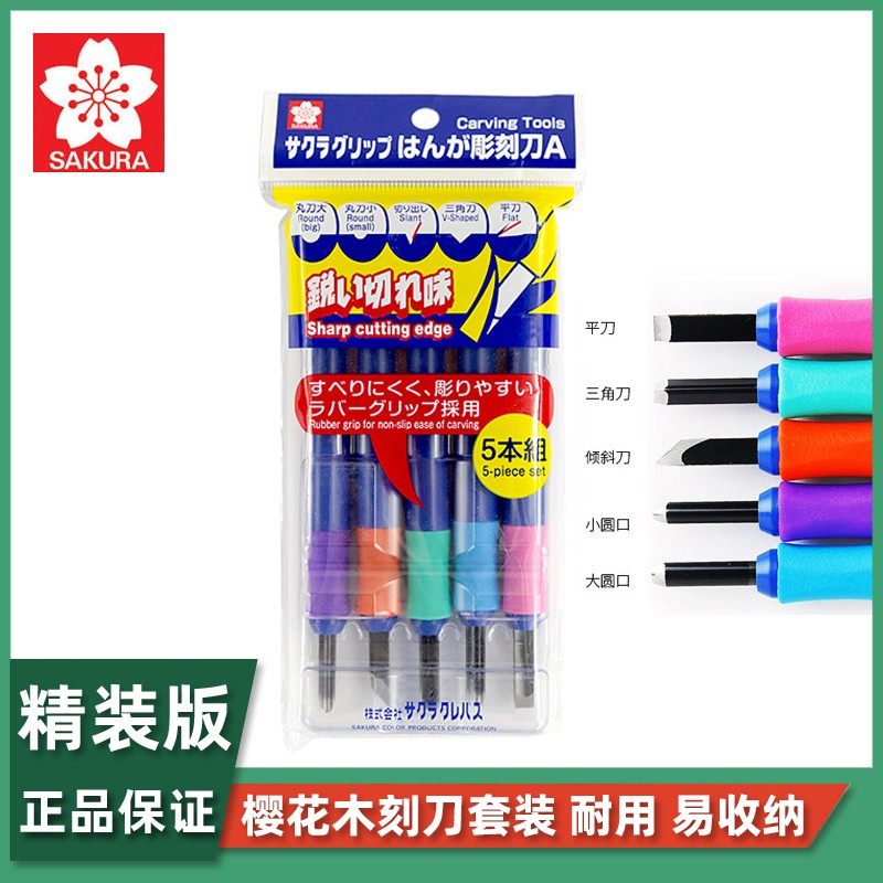 官方旗舰店 日本sakura樱花牌5把刻刀套装 版画雕版木雕刻刀工具 橡皮章手工艺学生用美工刻刀篆刻木工日产