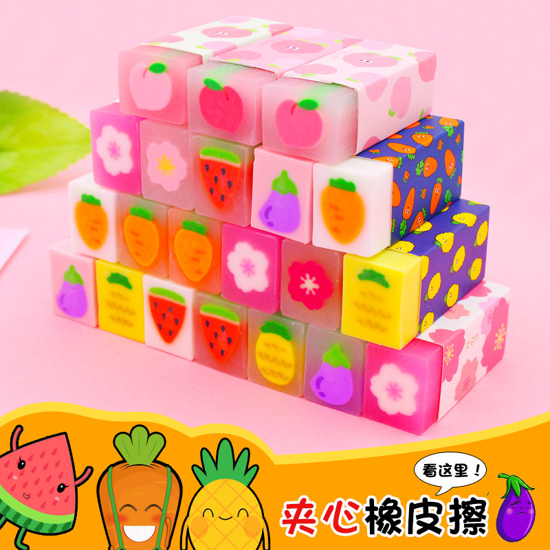 新款一正文具美术创意卡通可爱夹心橡皮擦小学生用 可切水果樱花儿童果冻橡皮擦无碎屑擦的干净幼儿园礼物
