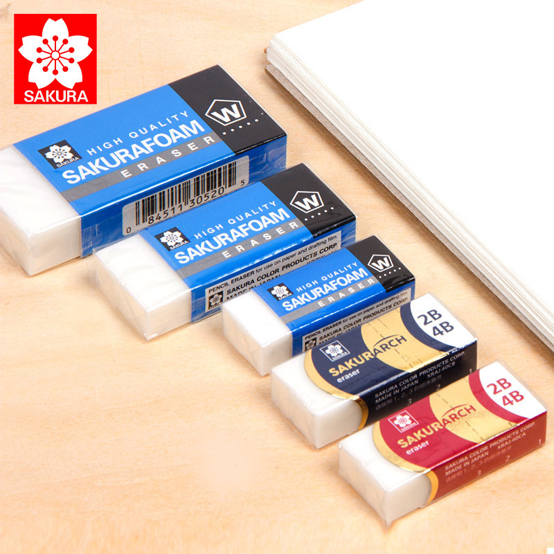 日本进口樱花4B/2B橡皮擦美术生专用素描高光专用不留痕无碎屑小学生文具用品擦得干净考试专业绘图2比橡皮