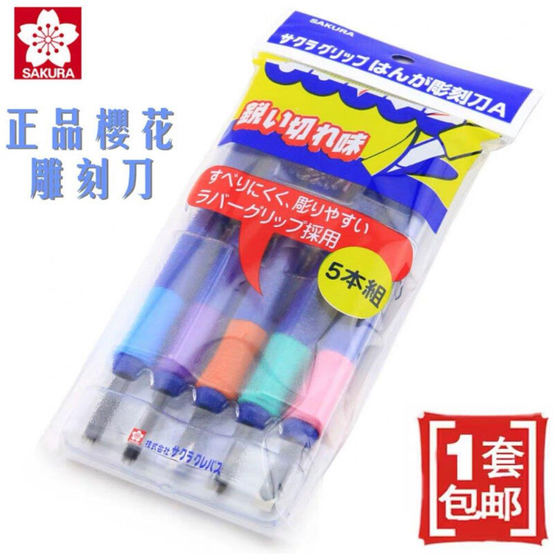 包邮日本樱花木刻刀五支 手工版画 雕刻刀 5件木雕刀 橡皮章刻刀 学生手工刻刀套装