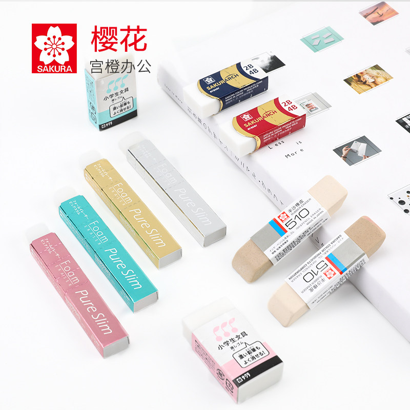 日本进口樱花牌橡皮超干净美术生专用小学生擦得干净不易留痕檫像皮素描铅笔象皮无屑学习文具擦字成线橡皮笔