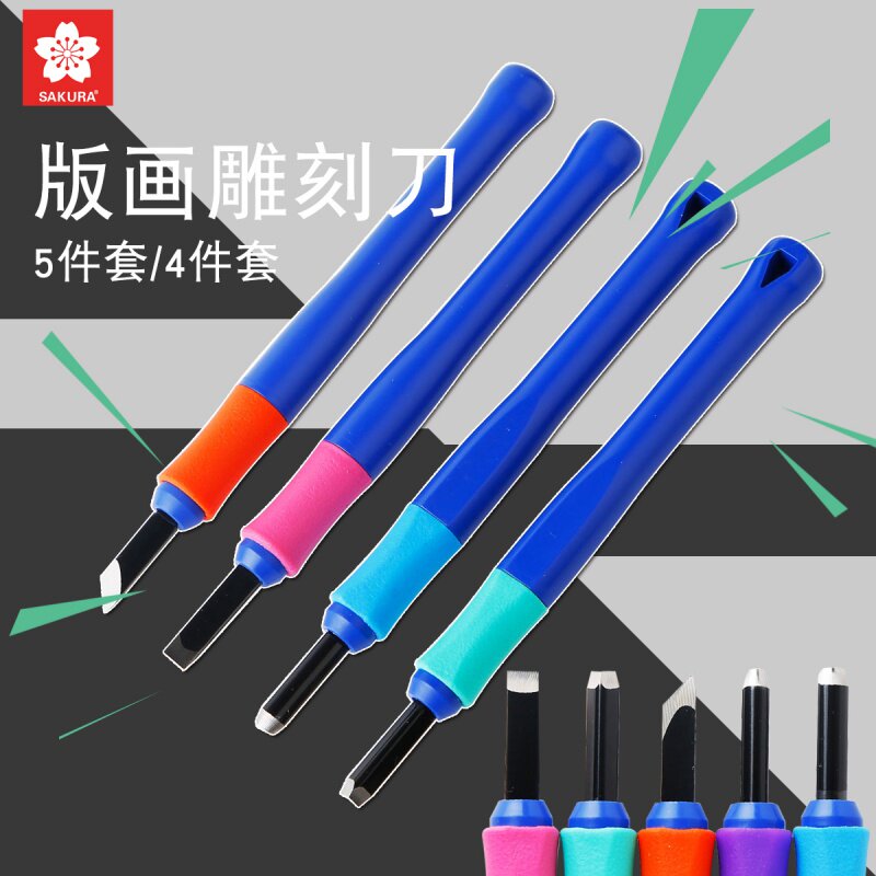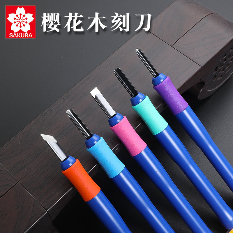 日本进口樱花雕刻刀木刻5件套手工刀版画专业木雕刀套装壁纸裁剪美工刀刀片橡皮章工具三角刀圆刀平刀斜刀